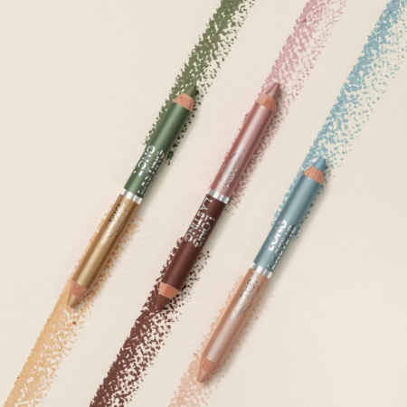 Cień do powiek w grubej kredce o przedłużonej trwałości z serii long-lasting z podwójną końcówką. Dwa idealnie dobrane kolory, pozwalają stworzyć kompletny makijaż oka w kilka chwil - nawet bez użycia pędzla!