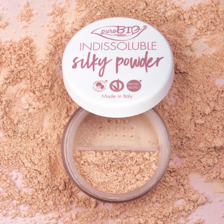 Puder sypki Silky to ultralekki puder, o jedwabistej konsystencji. Puder Silky to idealny wybór dla osób, które szukają naturalnego wykończenia i utrwalenia makijażu. Puder Silky nie obciąża skóry, natomiast zapewnia matowe wykończenie na wiele godzin. Puder nie zawiera talku w składzie!!! Formuła natomiast zawiera skrobię kukurydzianą- naturalną alternatywę dla talku, dodatkowo została wzbogacona o naturalne oleje, aby skóra się nie wysuszała.
