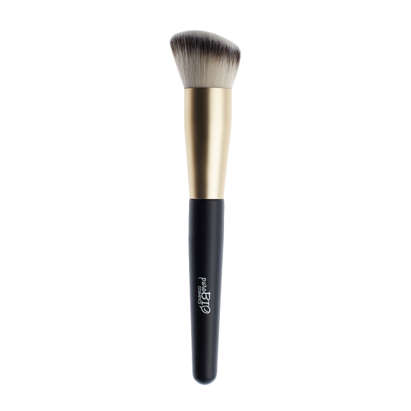 Pędzel do konturowania puroBIO ma zakrzywiony kształt z zaokrągloną końcówką, włosie jest gęste, dobrze wyprofilowane. Pędzel świetnie sprawdza się do nakładania różu i bronzera. Może zostać także zastosowany do nakładania bazy na twarz, do produktów zarówno o sypkiej, jak i kremowej i płynnej konsystencji