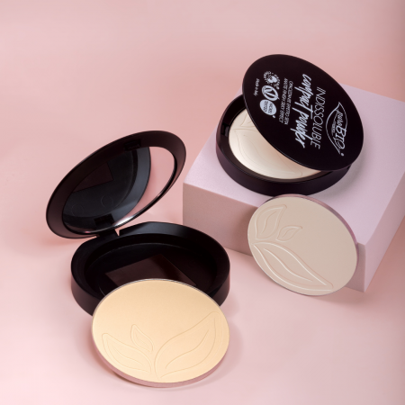Zawartość krzemionki i skrobi kukurydzianej, wchłaniających nadmiar sebum sprawia, że puder w kompakcie puroBIO jest odpowiedni dla cery normlanej i tłustej.