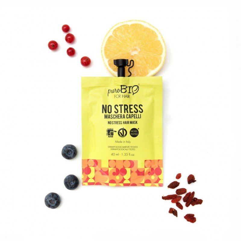 Maska NO STRESS to skoncentrowana formuła składników naturalnego pochodzenia, które wzmacniają i odżywiają włosy. Szczególnie polecana jest w przypadku włosów poddawanych zabiegom chemicznym, farbowaniu i stylizacji. Takie włosy zwykle są wysuszone, pozbawione naturalnego nawilżenia. Maska NO STRESS wnika głęboko w strukturę włosa na całej długości, działa ujędrniająco i regenerująco.